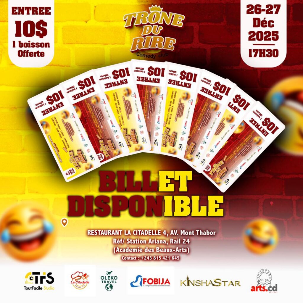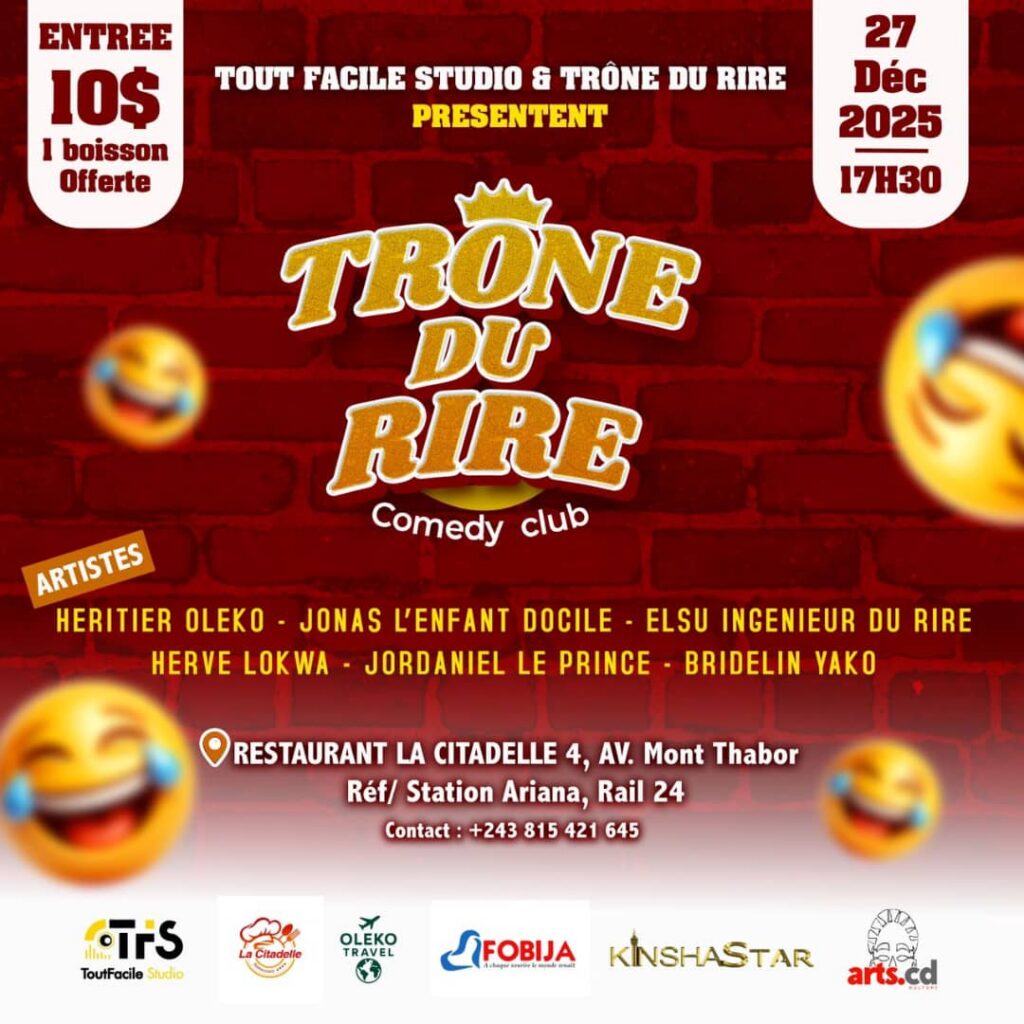 La structure Trône du Rire Comedy Club a donné deux rendez-vous exceptionnels pour le vendredi 26 et le samedi 27 décembre 2025, en spectacle humoristique, ainsi dans un nouveau décor, au restaurant la Citadelle, dans la commune de la Gombé, au nord-ouest de la capitale de la République démocratique du Congo (RDC).